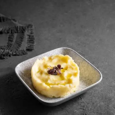 Creamy blend of chickpeas and tahini, lemon juice, topped with meat, garnished with pine nuts and olive oil.